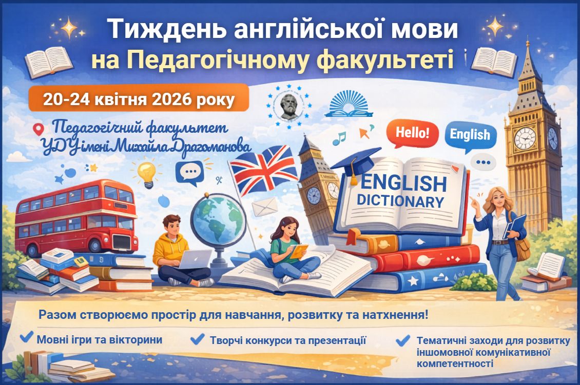 З 20 по 24 квітня 2026 року на Педагогічному факультеті відбудеться Тиждень англійської мови — подія, що об’єднає студентів, викладачів та всіх охочих вдосконалити свої мовні навички.