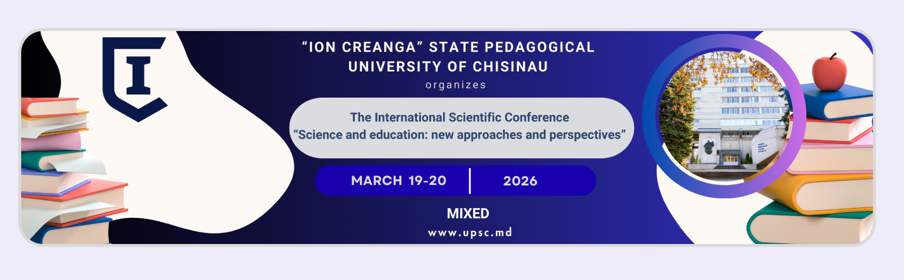 Державний педагогічний університет імені Йона Крянге в Кишиневі / Ion Creanga State Pedagogical University of Chisinau (Республіка Молдова) запрошує до участі в Міжнародній науковій конференції «НАУКА ТА ОСВІТА: НОВІ ПІДХОДИ ТА ПЕРСПЕКТИВИ», яка відбудеться 19–20 березня 2026 року у змішаному форматі (очно та онлайн).