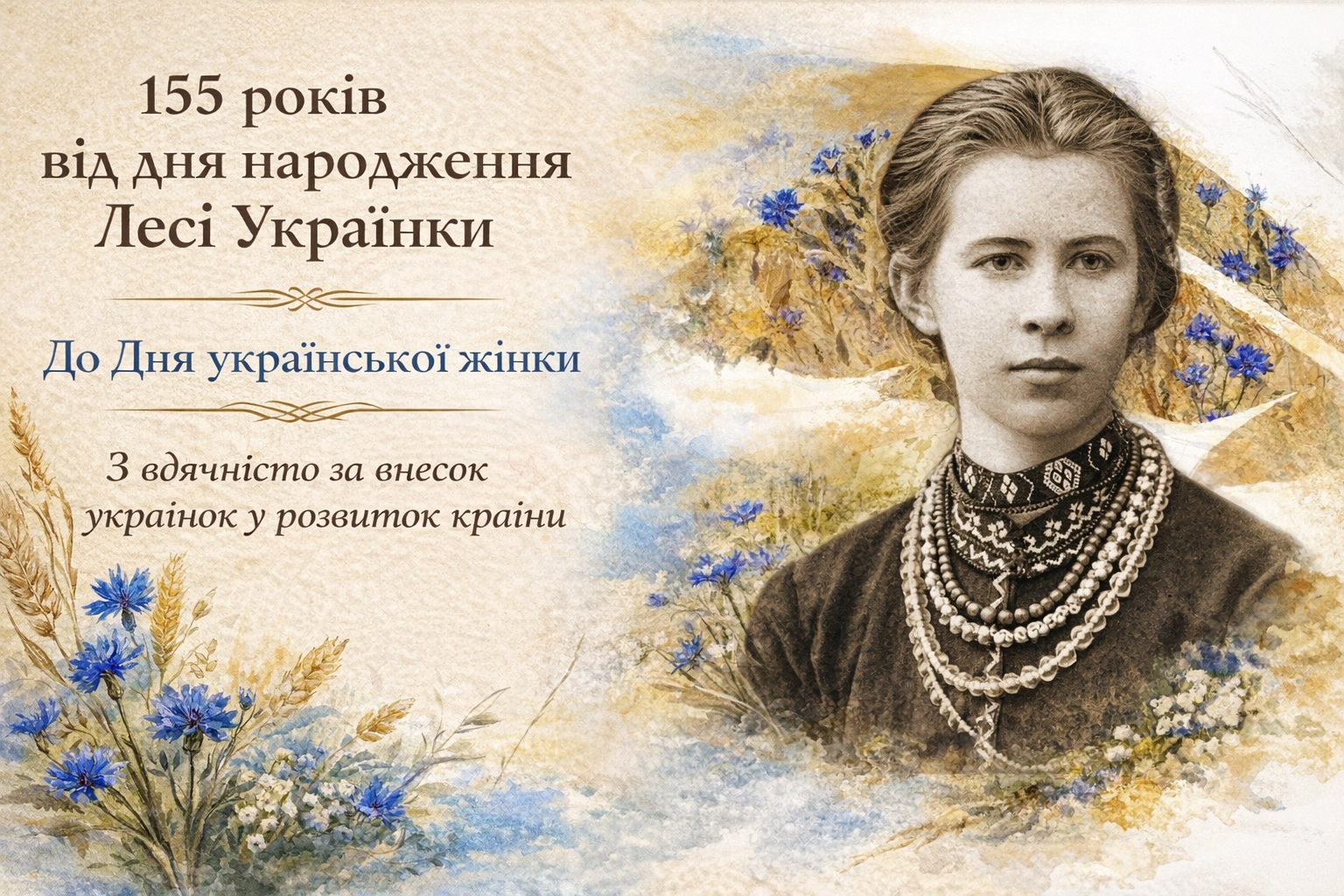25 лютого, у день народження Лесі Українки, ми вшановуємо не лише видатну поетесу й мислительку, а й силу українського жіноцтва – інтелектуальну, духовну, державотворчу.
