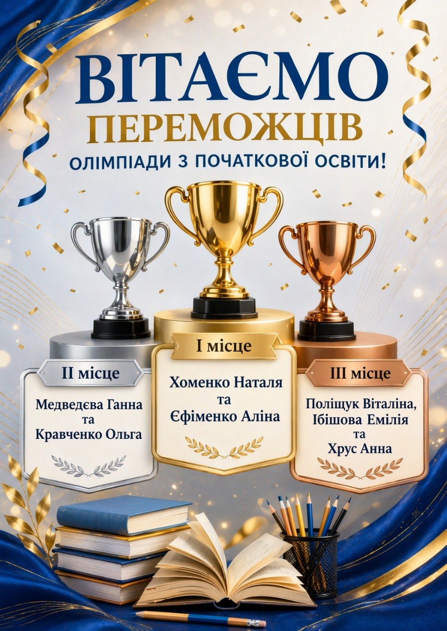 ВІТАЄМО ПЕРЕМОЖЦІВ ОЛІМПІАДИ З ПОЧАТКОВОЇ ОСВІТИ! 🎉📚