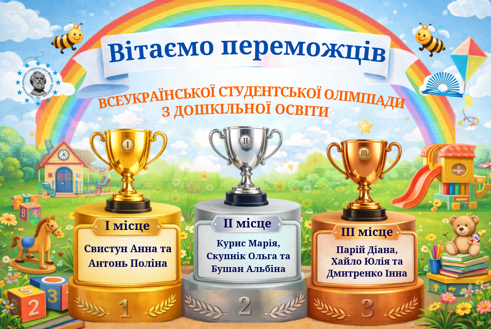 ВІТАЄМО ПЕРЕМОЖЦІВ ВСЕУКРАЇНСЬКОЇ СТУДЕНТСЬКОЇ ОЛІМПІАДИ З ДОШКІЛЬНОЇ ОСВІТИ!