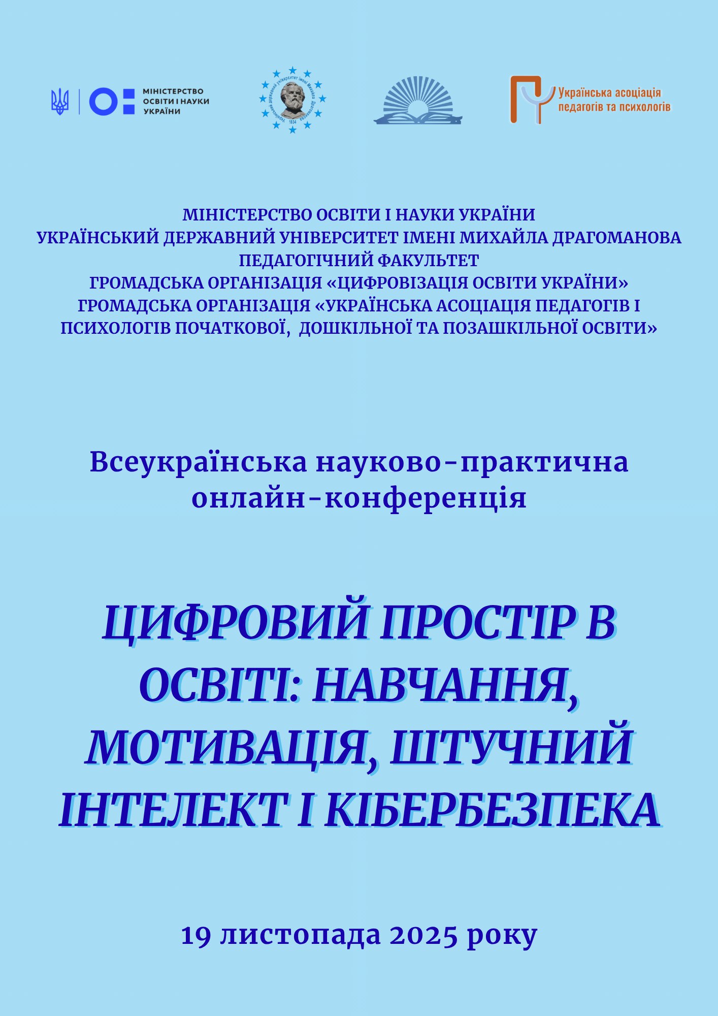 Всеукраїнська науково-практична онлайн-конференція «Цифровий простір в освіті: навчання, мотивація, штучний інтелект і кібербезпека» (19.11.2025)