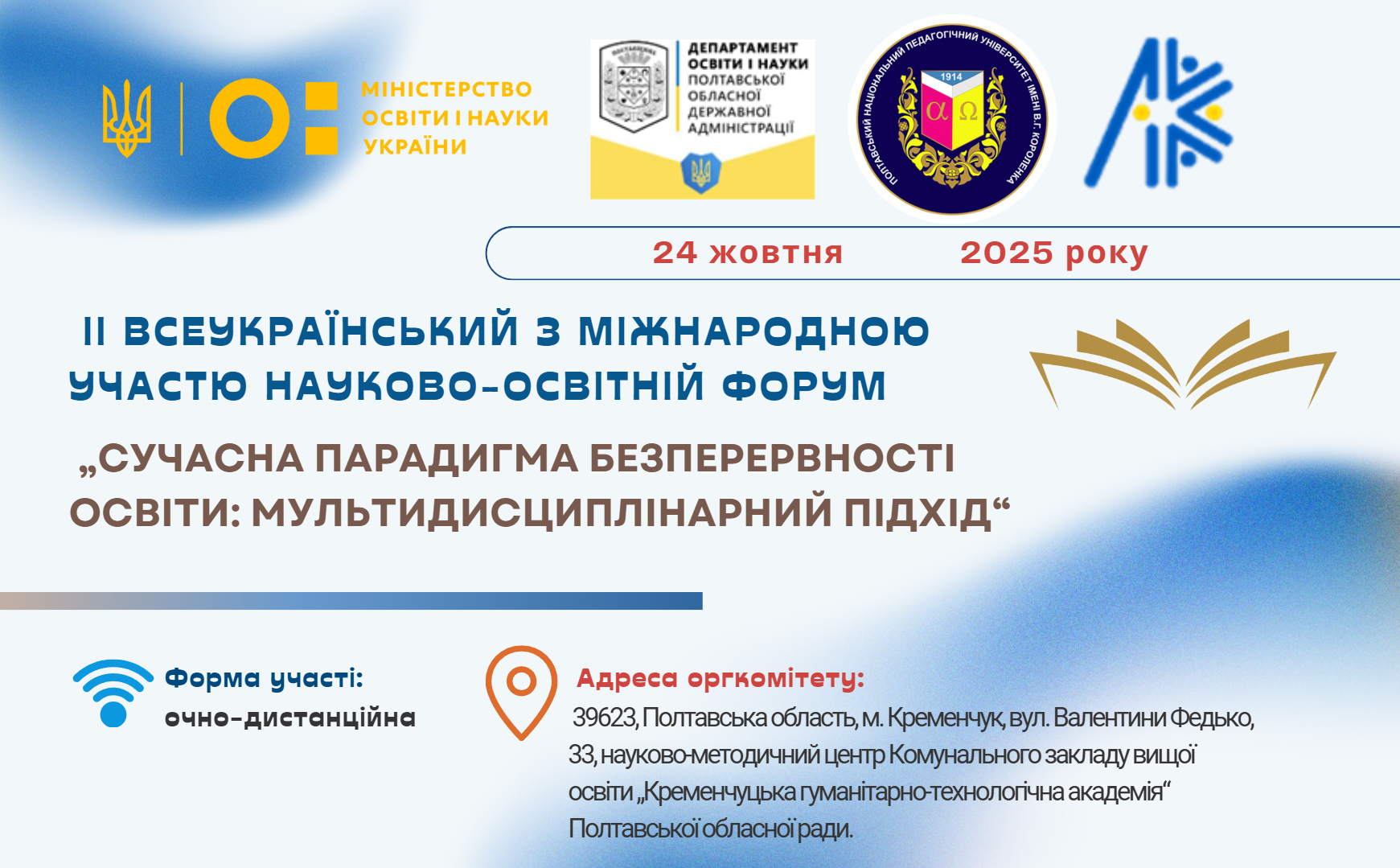 📚 Запрошуємо на ІІ Всеукраїнський науково-освітній форум із міжнародною участю «Сучасна парадигма безперервності освіти: мультидисциплінарний підхід» (24.10.2025; Кременчук)