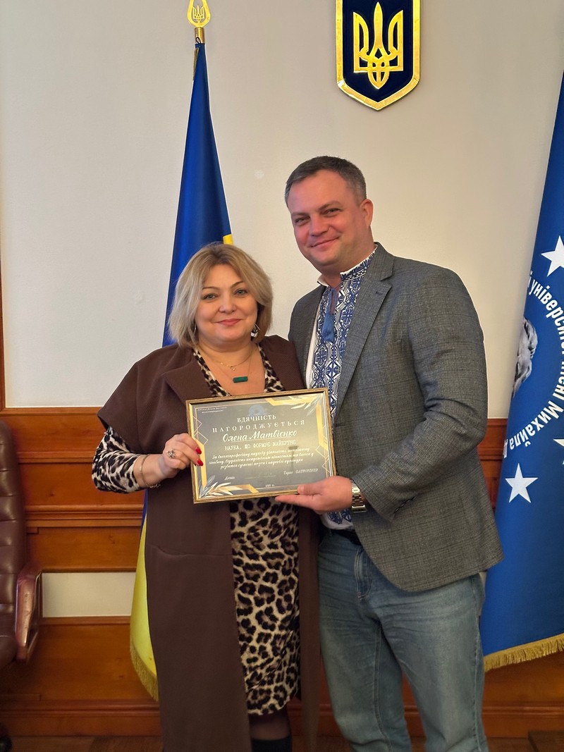За професійний та системний підхід до навчально-методичної роботи, відповідальність у формування освітнього процесу, увагу до змісту й структури навчальних матеріалів, а також за внесок у забезпечення стабільної якості освіти